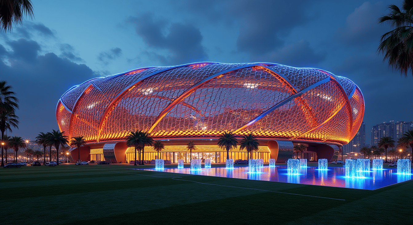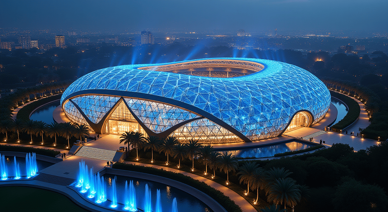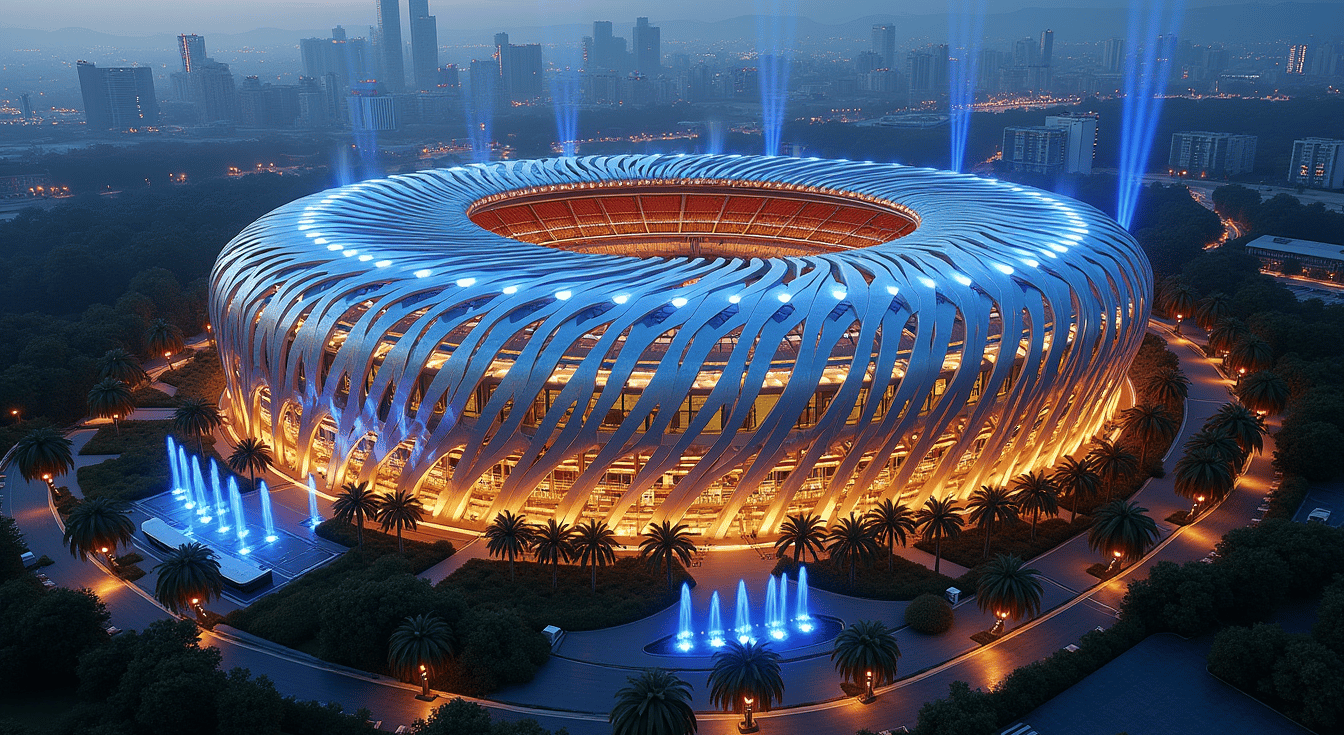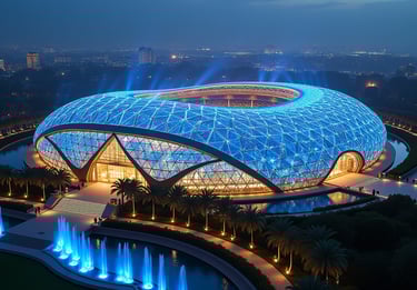 This stunning Stadium, reminiscent of the World's most Iconic and Award-Winning Structures, embodies fluidity, organic forms, and a seamless integration with its environment.